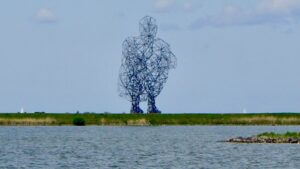 De Tong is één van de landschapsobjecten in de Flevopolder. Het gaat om grote kunstwerken, die de weidsheid van de polder benadrukken. Veel van de andere kunstobjecten zijn onderdeel van het project Land Art Live. Een veel gefotografeerd onderdeel hiervan is wat in de volksmond de Poepende Man wordt genoemd. Dit kunstwerk bij Lelystad heet eigenlijk Exposure en is van de Engelse beeldhouwer Antony Gormley. Aan het eind van deze blog zie je een foto van de Poepende Man.